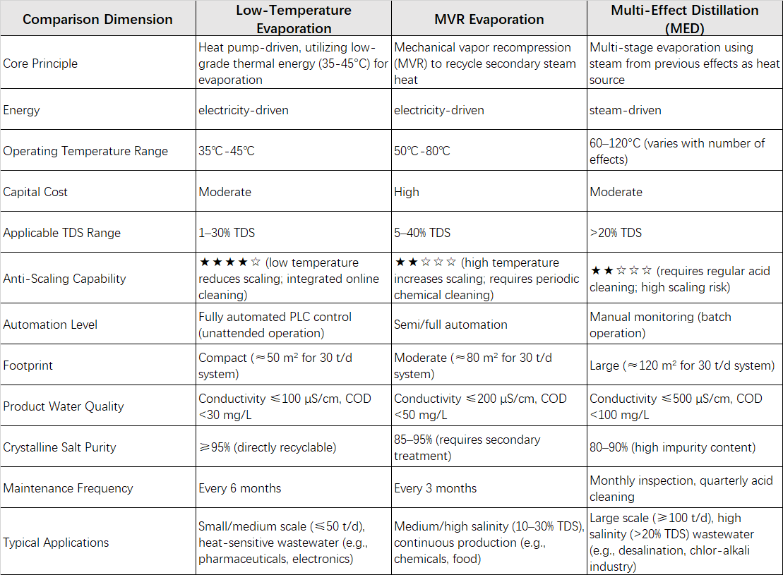 4、Comparative Analysis of Low-Temperature Evaporation, MVR Evaporation, and Multi-Effect Distillation (MED) Processes