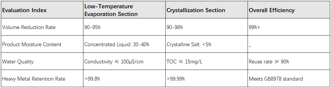 The low-temperature vacuum evaporation and vacuum scraper crystallization combined process provides an economically efficient solution for high-salinity wastewater treatment through precise operational adaptation and intelligent control. It is particularly suitable for medium- and small-scale projects to achieve multiple goals, including pollution reduction, carbon emission reduction, resource recovery, and zero liquid discharge(ZLD. When selecting equipment, it is recommended to conduct pilot testing, optimize operational parameters based on salt composition, and ensure the system’s long-term stable operation.
