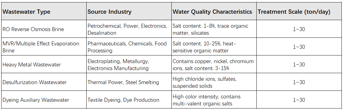 1. Types of High-Salinity Wastewater and Industries Suitable for Low-Temperature Evaporation Treatment