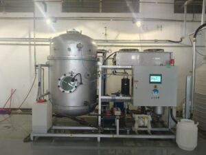 After completing several evaporation cycles, the compressor stops working, and the concentration pump is turned on to draw the concentrated liquid into the buffer tank, where it proceeds to the next step in the process.